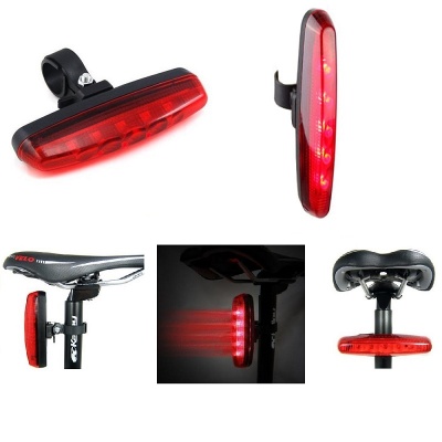 Фара задняя водонепроницаемая для велосипеда. Прекрасно подойдет для обозначения себя как в городе, так и за его пределами. 5 красных светодиодов. 3 режима работы. Крепится к подседельному глаголу, багажнику велосипеда, а также к детскому велокреслу и велорюкзаку . Питание в комплекте: AAА х 2 шт. Автономность заряда: 200 часов. Вес: 90 гр. Материал: пластик. Цвет: красно-черный.
