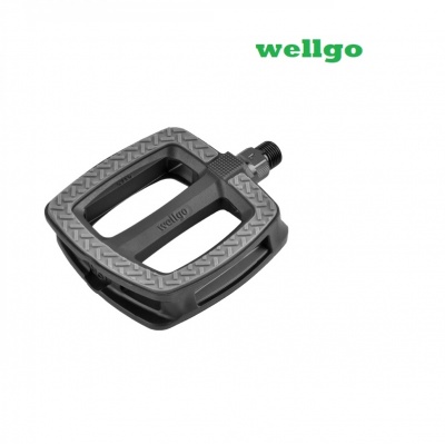 Педали пластиковые WELLGO для велосипеда. Антискользящая платформа. Резьба 9/16". Полимерный подшипник технологии 2DU. Стальная ось. Двусторонние светоотражатели. Размер: 110*96*26  мм.